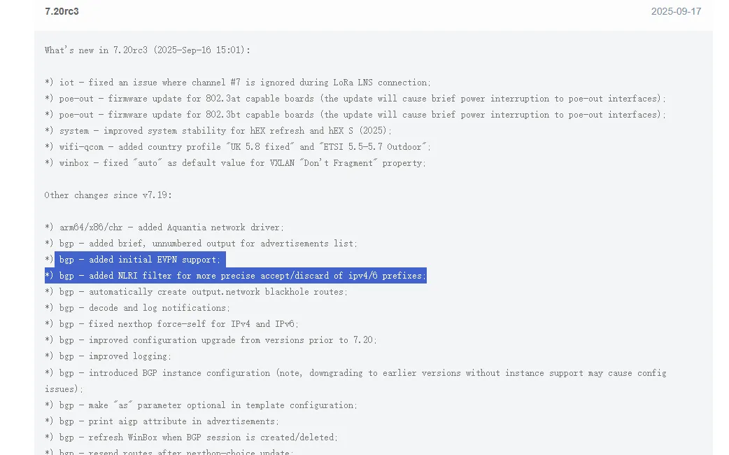EVPN官方文档:https://help.mikrotik.com/docs/spaces/ROS/pages/315883568/EVPN#EVPN-VXLANandEVPNconfiguration